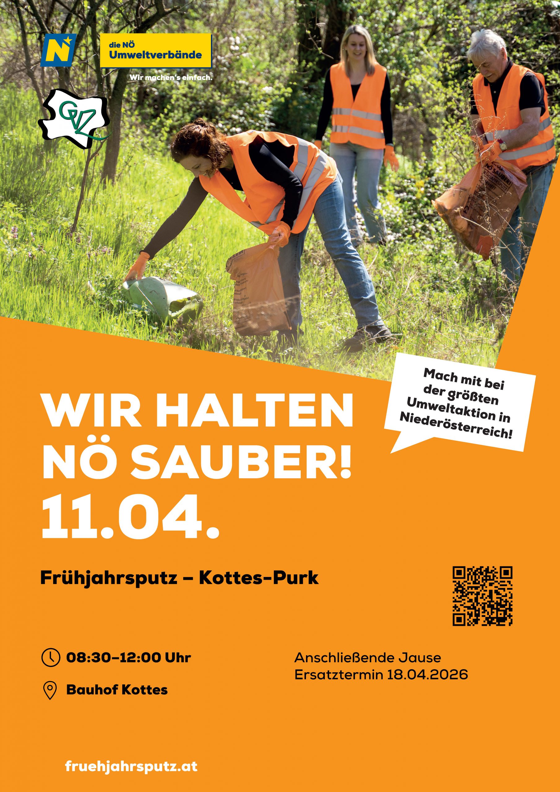 Auch im Jahr 2026 beteiligt sich die Marktgemeinde Kottes-Purk wieder an der landesweiten Aktion „Wir halten NÖ sauber!“ und lädt alle Bürgerinnen und Bürger herzlich zur gemeinsamen Flurreinigung im Gemeindegebiet ein. Ziel der Aktion ist es, achtlos weggeworfenen Müll entlang von Straßen zu entfernen und damit einen wichtigen Beitrag zum Umwelt- und Naturschutz zu leisten.