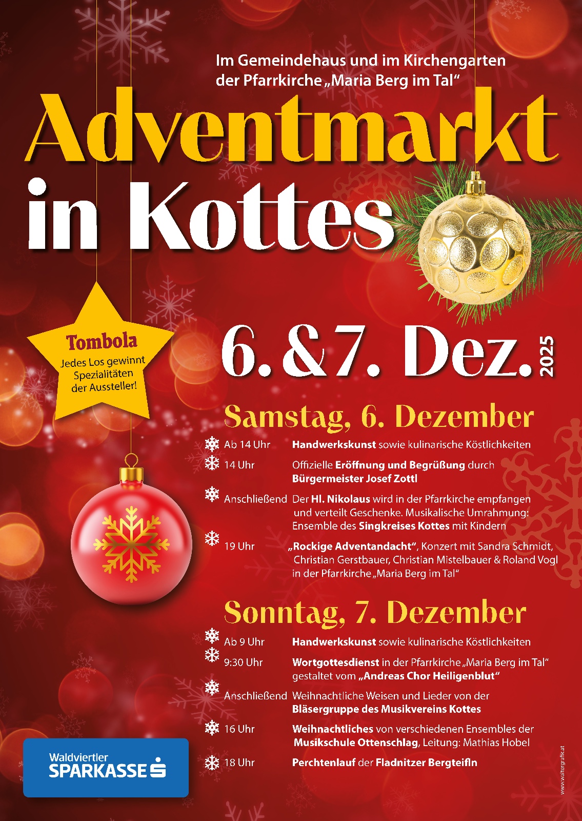 14 Nov. 2025 Adventmarkt in Kottes 06. und 07.12.2025 von gemeinde | Eingetragen bei: Aktuelles aus der Gemeinde Kottes-Purk | 0