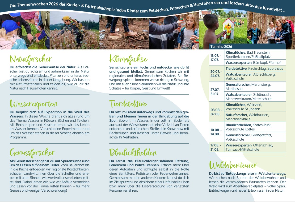Kinder- und Ferienakademie 2026 im Waldviertler Kernland