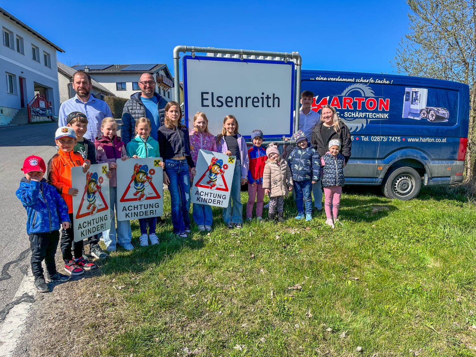 In Elsenreith wurden kürzlich gemeinsam mit der Raiffeisenbank drei neue „Achtung Kinder“-Tafeln montiert. Die auffälligen Hinweisschilder sollen in den betroffenen Straßenabschnitten für mehr Aufmerksamkeit sorgen und alle Verkehrsteilnehmer zu einer rücksichtsvollen Fahrweise bewegen.