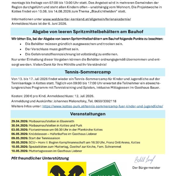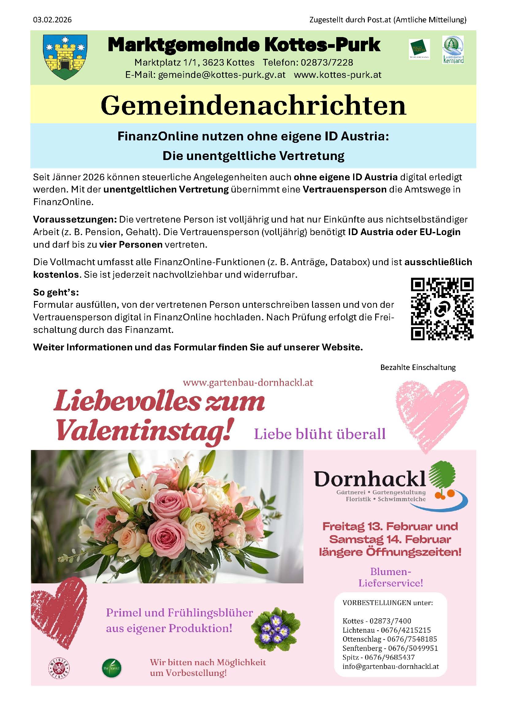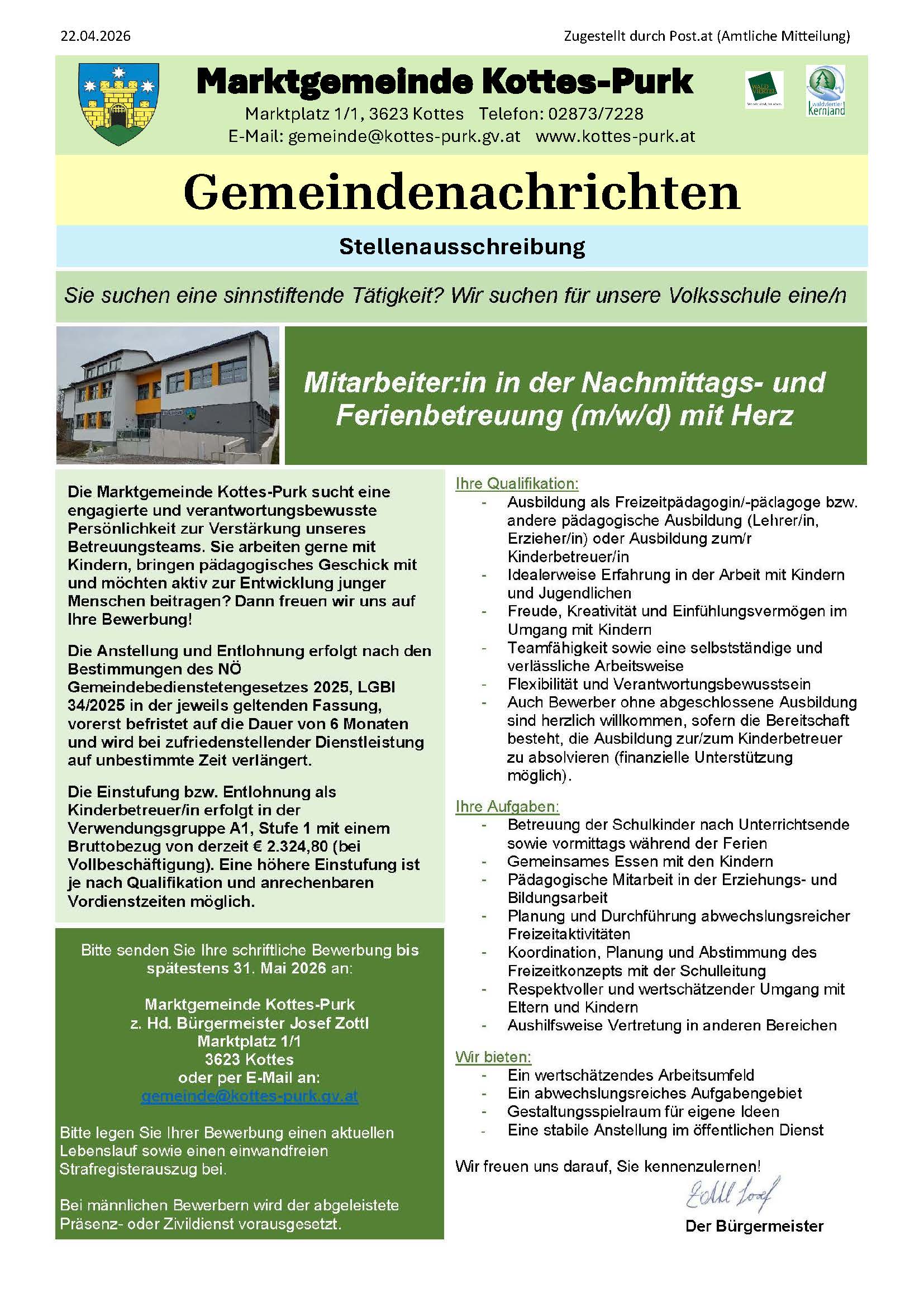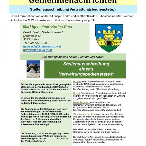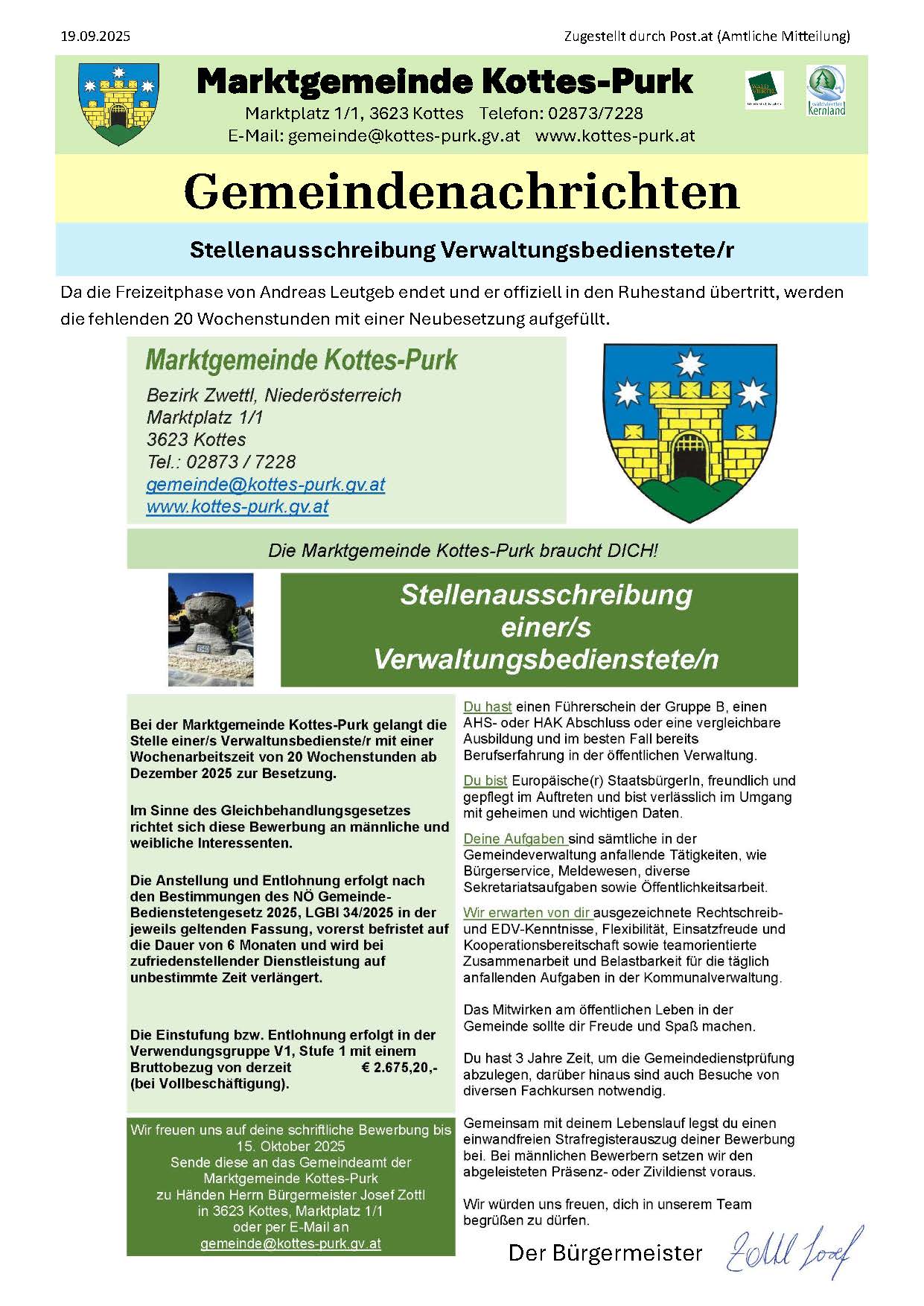 Lesen Sie die Neuigkeiten der Gemeinde Kottes-Purk auch online.