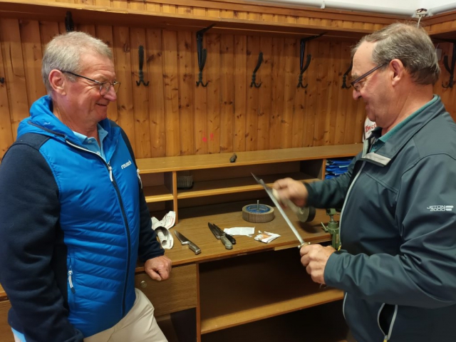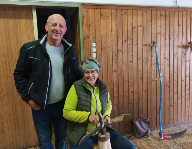 Trotz des nebeligen Wetters waren unsere Ehrenamtlichen am Freitagnachmittag fleißig: Kostenloses Messer schleifen, Sensen dengeln oder Stiele reparieren standen am Programm.